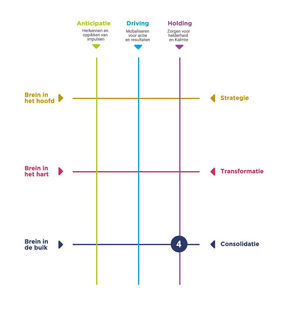• Kan het oude loslaten en het nieuwe omarmen vanuit een verandering die hij of zij zelf initieert, anderen helpend om datzelfde te doen.